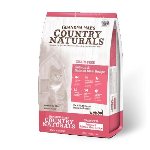三文魚粉、 豌豆、 雞肉脂肪(與生育酚,即維他命E混合)、 鷹嘴豆、 鯡魚粉、 木薯、 蛋粉、 扁豆、 豌豆蛋白質、 乾紅蘿蔔、 亞麻籽粉、 DL-蛋氨酸、 氯化膽鹼、 牛磺酸、 小紅莓、 藍莓、 L-離氨酸、 碳酸鈣、 磷酸二氫鈉、 維他命E補充劑、 乾嗜酸乳桿菌發酵物、 枯草芽孢桿菌發酵產物、 乾雙歧桿菌嗜熱發酵物、 乾長雙歧桿菌發酵物、 乾屎腸球菌發酵物、 鋅蛋白、 硫酸鋅、 硫酸亞鐵、 銅蛋白、 錳蛋白、 維他命A補充劑、 硫酸銅、 煙酸、 泛酸鈣、 維他命B12補充劑、 硫酸錳、 核黃素、 生物素 (維他命B7)、 維他命D3補充劑、 鈷蛋白、 硫胺素硝酸鹽 (維他命B1硝酸鹽 )、 葉酸 (維他命B9)、 碘酸鈣