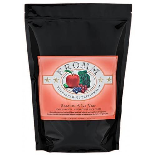 Fromm Four-Star Nutritionals® Salmon À La Veg® Recipe Food for Cats is formulated to meet the nutritional levels established by the AAFCO Cat Food Nutrient Profiles for all life stages.