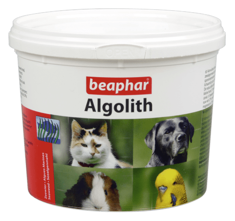 Algolith is a natural sea algae meal, made by fastidious preparation methods and can be used for dogs, cats, birds and small animals. It contains a relatively high percentage of trace elements (e.g. Iodine) and vitamins,and therefore has a very favorable action on all body functions. Algolith strenghtens the natural color of the coat, feathers, eyes and nose and ensures a healthy, glossy coat/plumage.