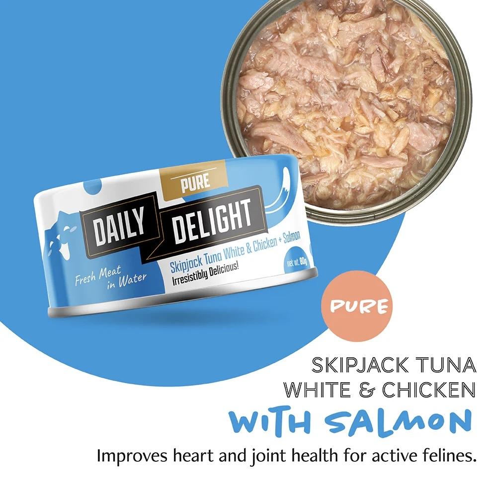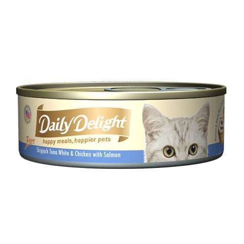 [Daily Delight-貓罐]湯汁系列|白鰹吞拿魚+雞肉+三文魚|80g|(湯汁肉絲/主食)|(DD43)