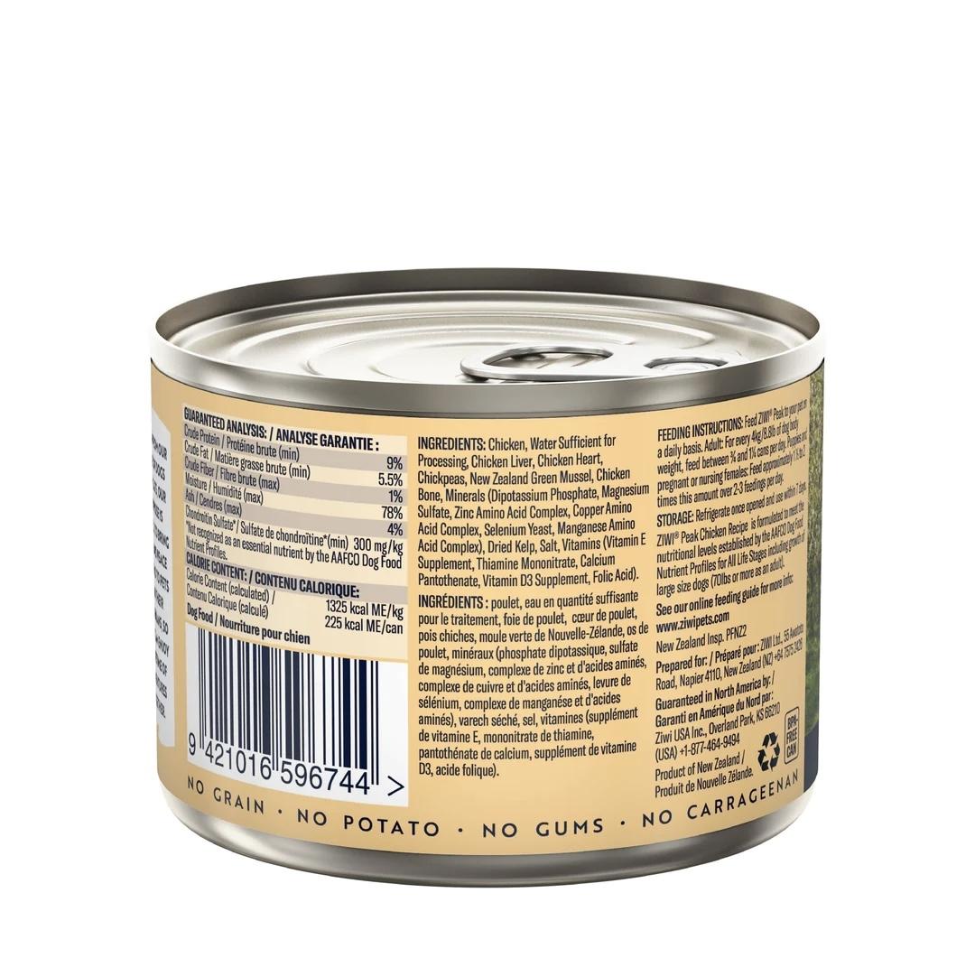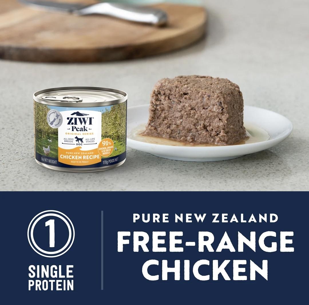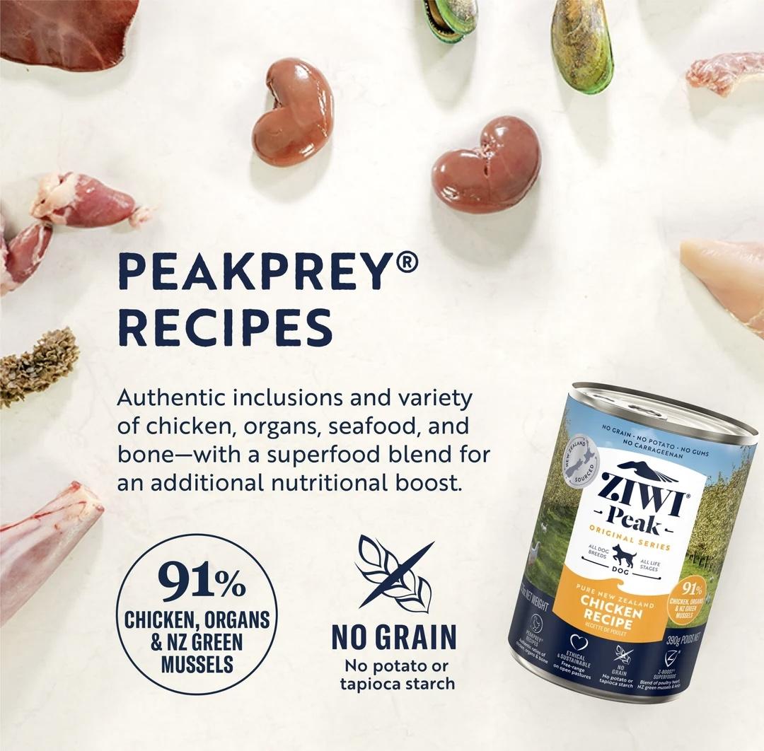 雞肉,水 ,雞肝,雞心,鷹嘴豆, 新西蘭綠唇貽貝, 雞骨,礦物質, 海帶乾,鹽,維他命