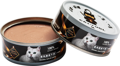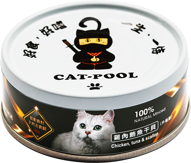 成份:雞肉.鮪魚.雞肝.干貝.碳酸鈣.牛磺酸.葡萄糖胺.軟骨素.鱉蛋粉.金盞花萃取.貓薄荷.綜合胺基酸.維生素B群.維生素A.維生素D.維生素E.礦物質