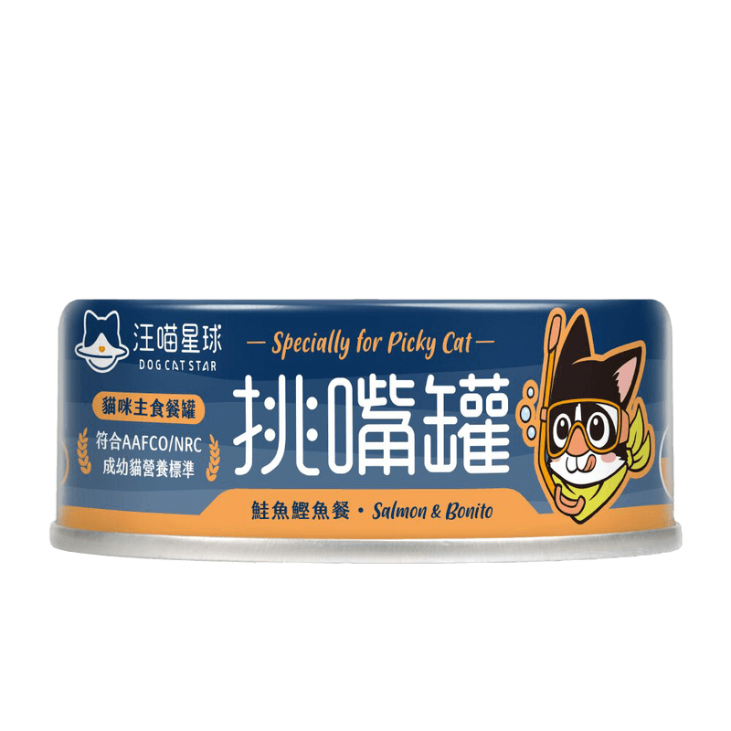 [汪喵星球-貓罐]挑嘴罐|無膠主食罐|鮭魚鰹魚餐|80g|(肉泥/主食)