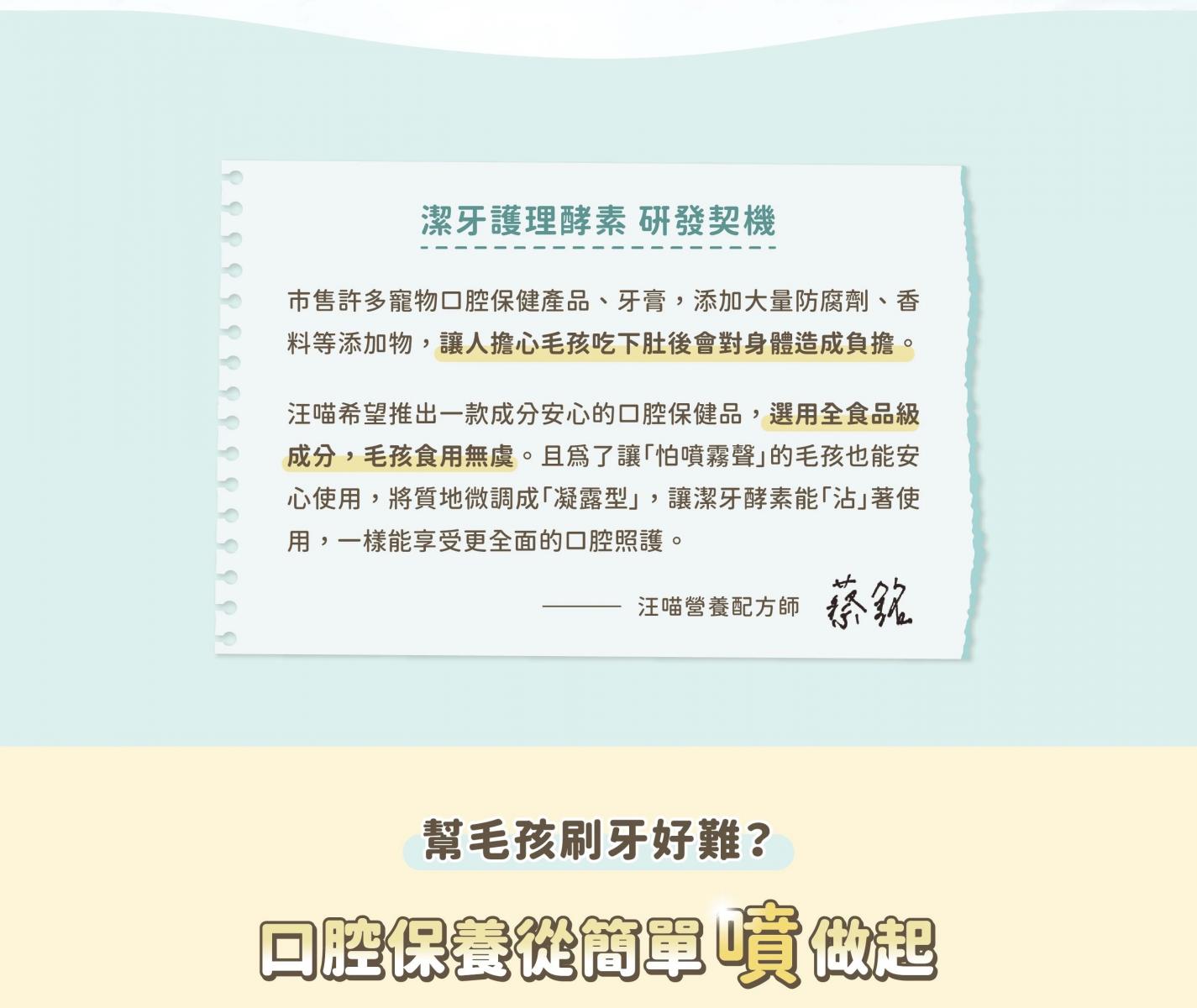 汪喵潔牙護理酵素可幫助調節口腔菌叢,即便無法刷牙也能有一定的助益。但最好的犬貓牙齒清潔方式,還是推薦搭配物理性磨擦(刷牙)效果更顯著喔!