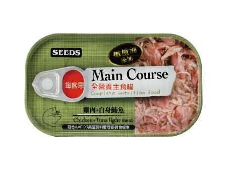 水,雞肉,白身鮪魚,雞油,木薯澱粉,橄欖油,磷酸鈣,瓜爾豆膠,雞湯,葡萄糖,甘氨酸,氧化鋅,鐵, 亞硒酸鈉,硫酸錳,甘胺酸銅複合物,碘化鉀,硫酸鎂,氯化膽鹼,氯化鉀,維生素E,維生素B1,菸酸,維生素A,維生素B6,泛酸鈣,核黃素,葉酸,維生素B12,維生素D3,生物素,牛磺酸,三聚磷酸鈉(無添加人工維他命K3)