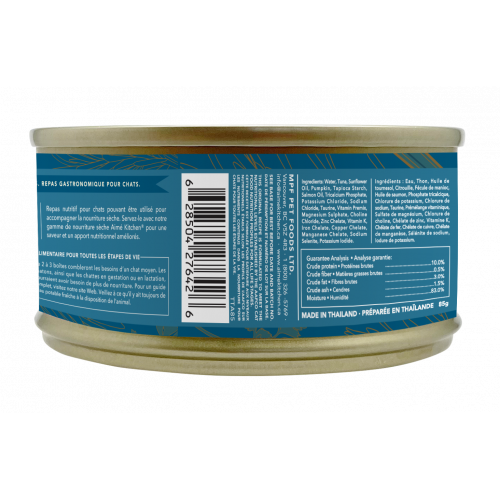 成分: 鮮吞拿魚、葵花籽油、南瓜、木薯澱粉、三文魚油、磷酸三鈣、氯化鉀、氯化鈉、牛磺酸、維生素預混料、硫酸鎂、氯化膽鹼、鋅螯合物、維生素K、鐵螯合物、銅螯合物、錳螯合物、亞硒酸鈉、碘化鉀。