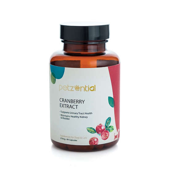 Petzential蔓越莓含有豐富的維他命A、C、原花青素(Proanthocyanidins),有效去除體內產生的自由基減慢衰老。蔓越莓有特殊的馬尿酸成分,屬於天然的抗生素,將泌尿器官內壁有害細菌及病毒隨小便排出體外,減低患上尿道炎機會。