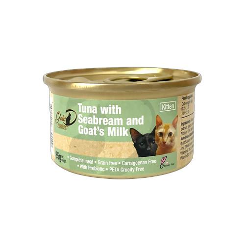 Gold-D 吞拿魚鯛魚山羊奶 貓罐頭 特別適合幼貓和懷孕的貓貓,優質成份製造,啖啖鮮肉配以濃湯和羊奶粉。Gold-D 貓罐頭 含有益生菌促進腸道健康。不含卡拉膠、色素及香料,不含人造防腐劑。泰國製造。
