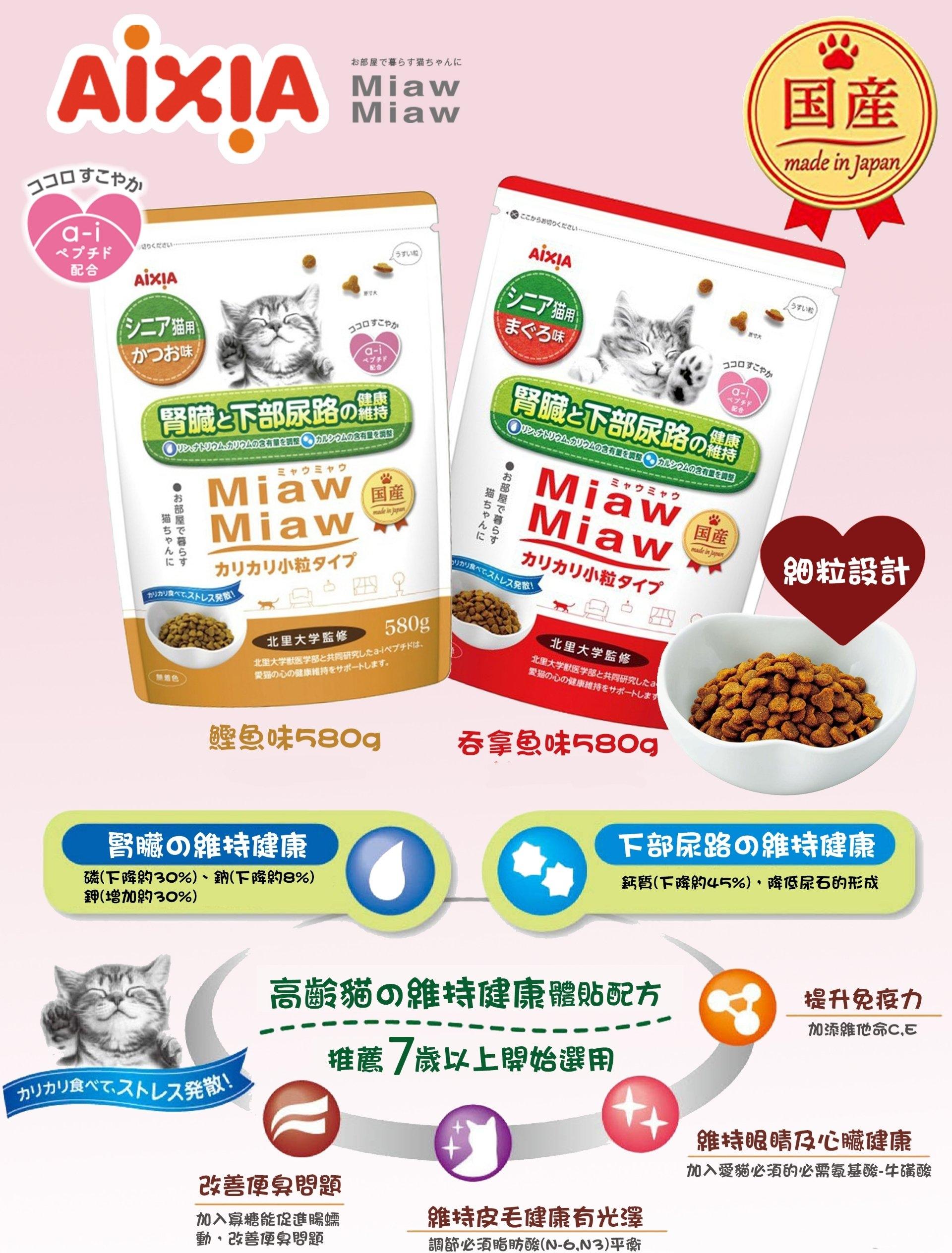 [Aixia-貓糧]Miaw Miaw|護腎臟尿道配方|吞拿魚味|580g|日本製