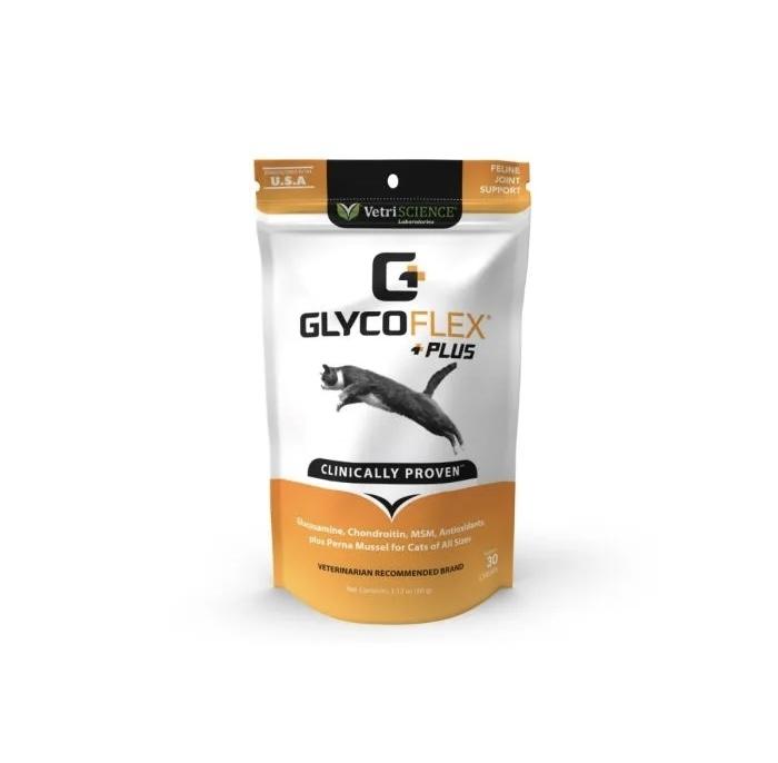 GlycoFlex® Plus is an advanced formula to support your cat’s joint health, comfort and mobility. It combines clinically proven ingredients, including Perna canaliculus, chondroitin sulfate, glucosamine, MSM and antioxidants to provide maximum joint support for cats of all ages, sizes and breeds. GlycoFlex® Plus is made with natural ingredients that you can feel good about giving to your cat every day. Even fussy eaters love these delicious fish-flavored chews!