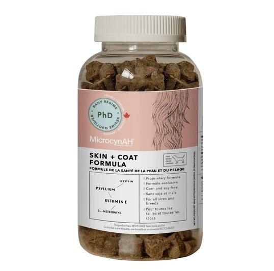 Active Ingredients: Primary Yeast Dried, Yeast Extract, Vitamin E Supplement, Lecithin, DL-Methionine, Dried Cranberry, Zinc Proteinate, Psyllium, Biotin, Glycine. 70mg of active ingredients per chew. Inactive Ingredients:Pork Liver, Vegetable Glycerin, Dried Sweet Potato, Pea Protein, Molasses, Pea Fiber, Natural Flavor, Sodium Chloride.