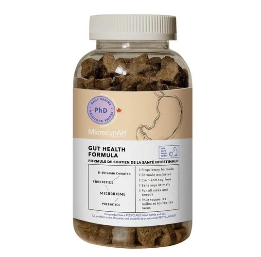 ACTIVE INGREDIENTS: Primary Dried Yeast, Dried Saccharomyces Cerevisiae Fermentation Product, Glucosamine HCl, Clinoptilolite, Glycine, Lactobacillus Acidophilus Fermentation Product Dehydrated, Enterococcus Faecium Fermentation Product Dehydrated, Lactobacillus Casei Fermentation Product Dehydrated, Lactobacillus Plantarum Fermentation Product Dehydrated, Aspergillus Niger Fermentation Extract Dehydrated, Aspergillus Oryzae Fermentation Extract Dehydrated, Bacillus Subtillus Fermentation Extract Dehydrated, D-Calcium Pantothenate, Pyridoxine Hydrochloride, Riboflavin, Thiamine, Niacin. 113mg of active ingredients per chew. INACTIVE INGREDIENTS: Chicken Liver, Chicken, Vegetable Glycerin, Sweet Potato Powder, Molasses, Pea Flour, Barley Flour, Pea Fiber, Natural Flavor, Salt, Yeast Extract, Rosemary Extract.