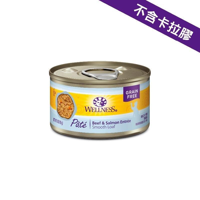 Wellness寵物健康®牛肉拼三文魚配方以兩種高優質蛋白質、必需脂肪酸和無添加生長激素和類固醇的牛肉和三文魚製成。