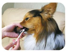 刷毛部分刷的時候以小幅度的動作輕輕刷拭。不要太用力,否則可能會傷到狗狗的牙齦。
