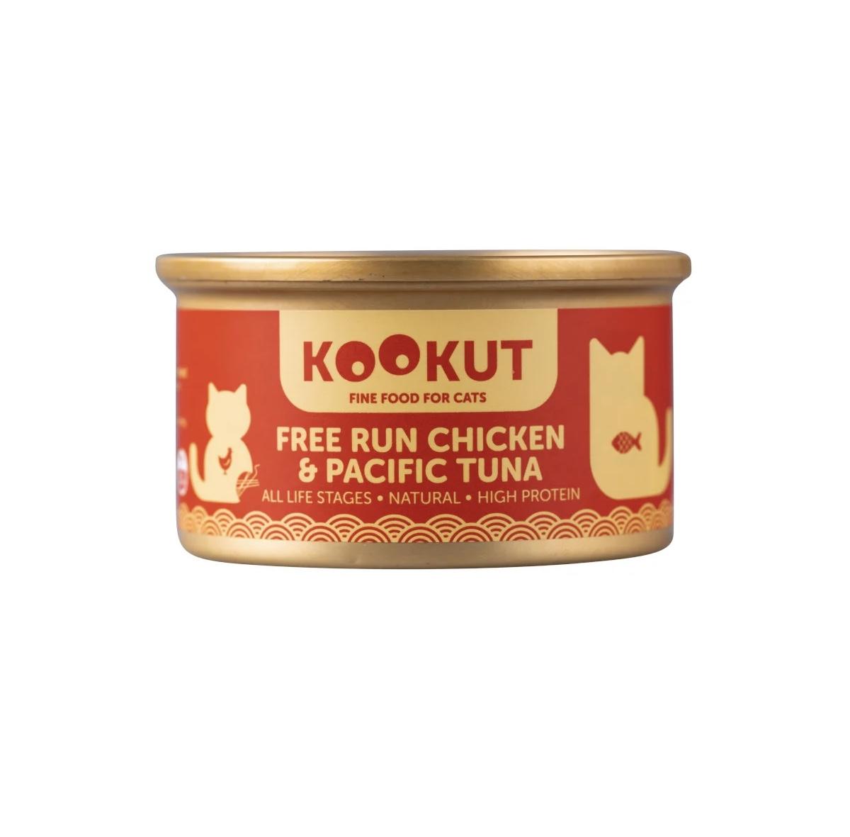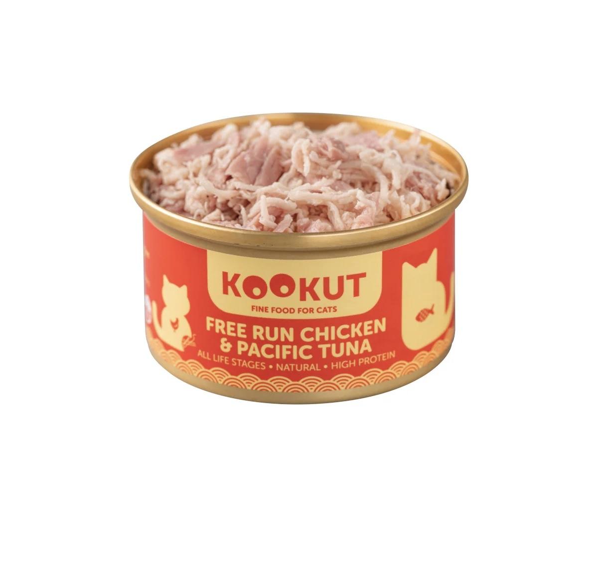 [Kookut-貓罐]走地雞+太平洋吞拿魚|Free Run Chicken & Pacific Tuna|70g|(湯汁肉絲)