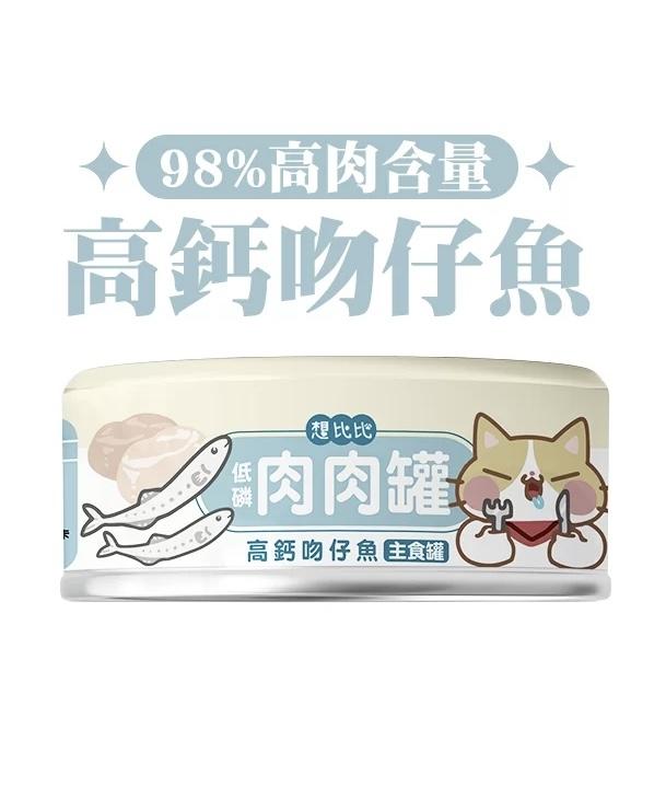 [想比比-貓罐]無穀物無膠低磷98%鮮肉|高鈣吻仔魚+雞肉|80g|(肉泥/主食)|台灣製