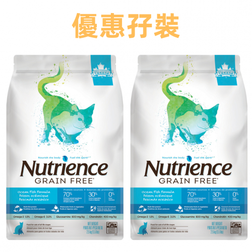 [Nutrience-貓糧]Grain Free無穀物系列|海洋魚配方|全貓|(特惠裝5.5lb*2包)|(代訂)