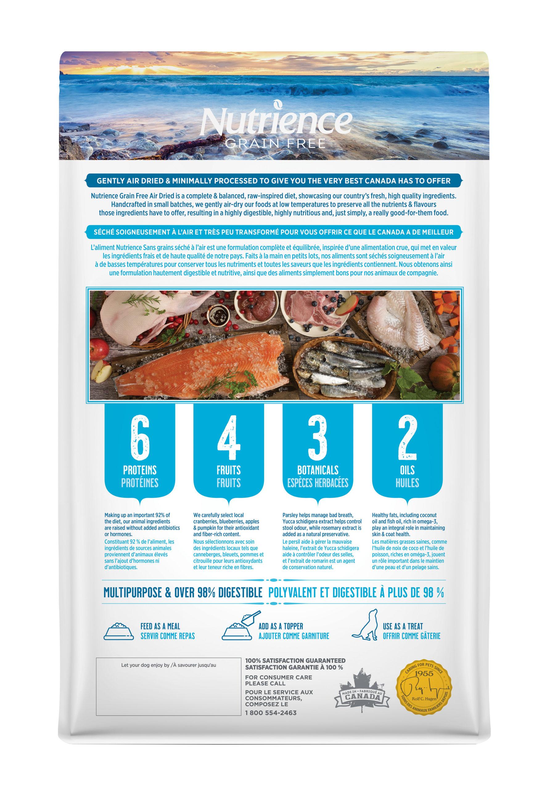 Nutrience Air Dried The Fisherman for Dogs 的配方符合 AAFCO 狗糧營養概況為所有生命階段製定的營養水平。