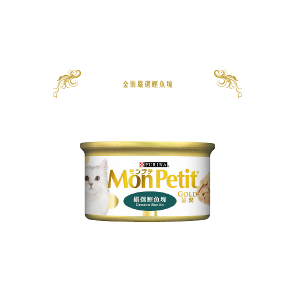 [Monpetit-貓罐]金裝系列|嚴選鰹魚塊|80g|(啫喱肉絲)