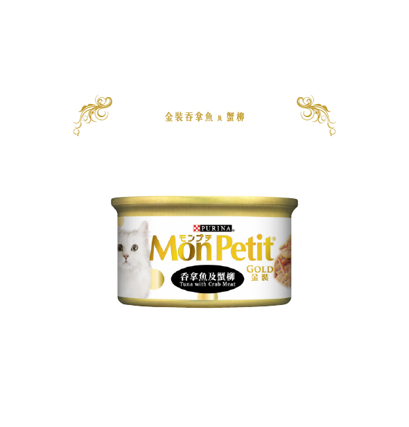 [Monpetit-貓罐]金裝系列|吞拿魚及蟹柳|80g|(啫喱肉絲)