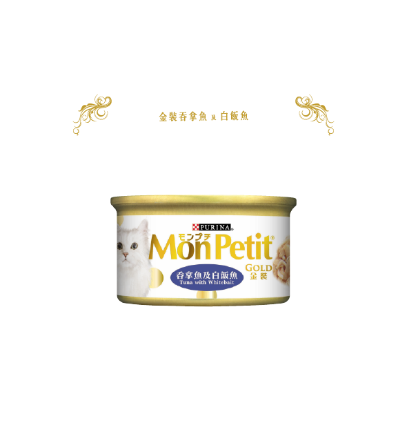 [Monpetit-貓罐]金裝系列|吞拿魚及白飯魚|80g|(啫喱肉絲)