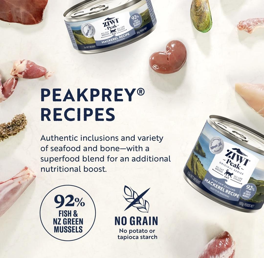 鯖魚,水,鷹嘴豆,新西蘭綠唇貽貝,DL-蛋氨酸,礦物質,海帶乾,維他命,牛磺酸