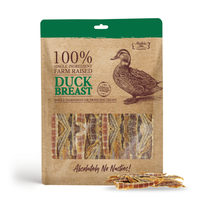 Absolute Bites 風乾鴨胸狗零食是美味的單一成分和低過敏性肉類零食。 適用於對鴨子不過敏的狗。 原料 100% 去骨鴨胸肉 單成分風乾零食 100% 天然、低過敏性狗零食 0% 抗生素或添加激素 無穀物,無麩質