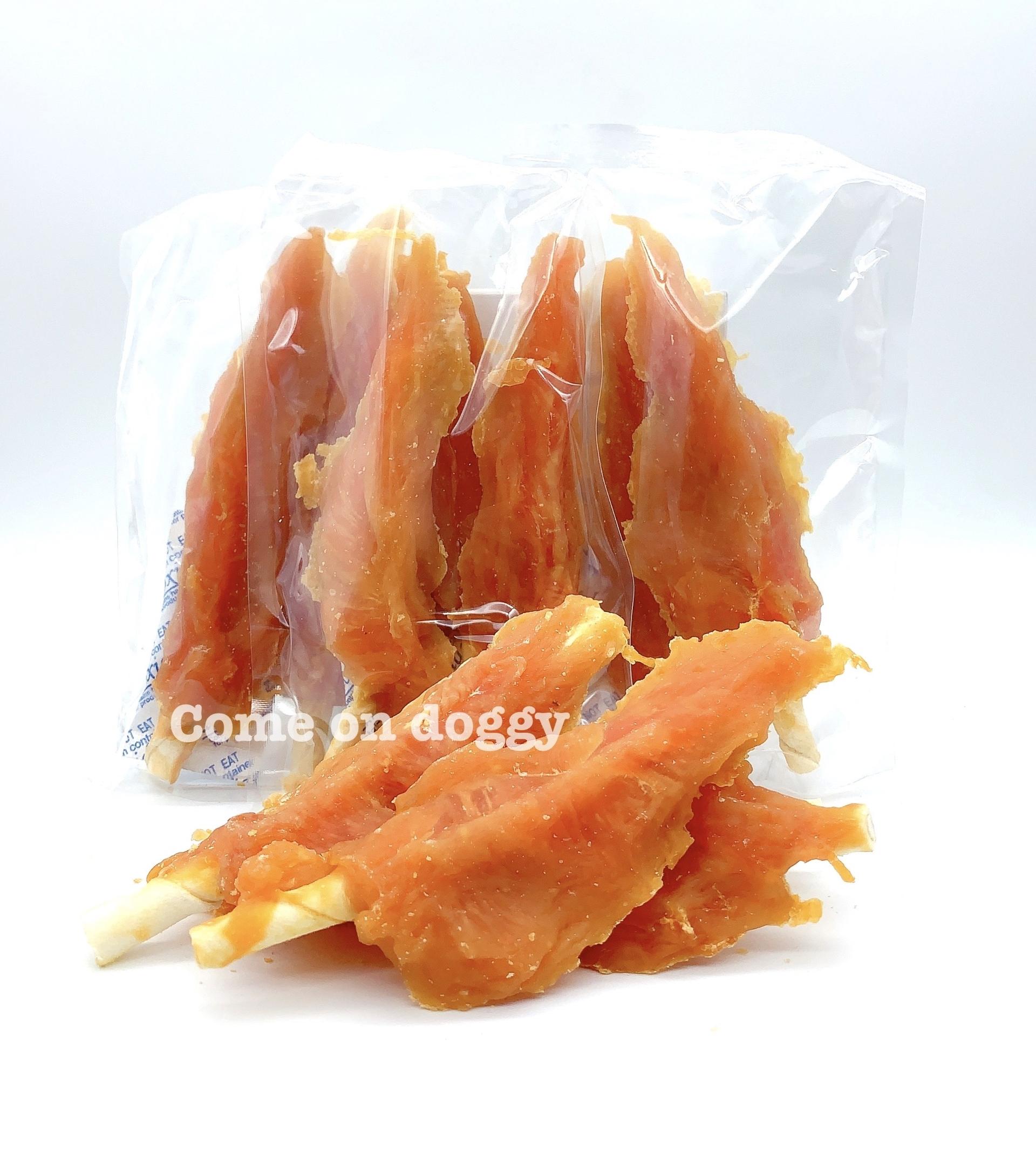 [透明袋大包裝小食]雞胸串牛奶牛皮棒(雞翼仔)|1kg|(獨立10小包)