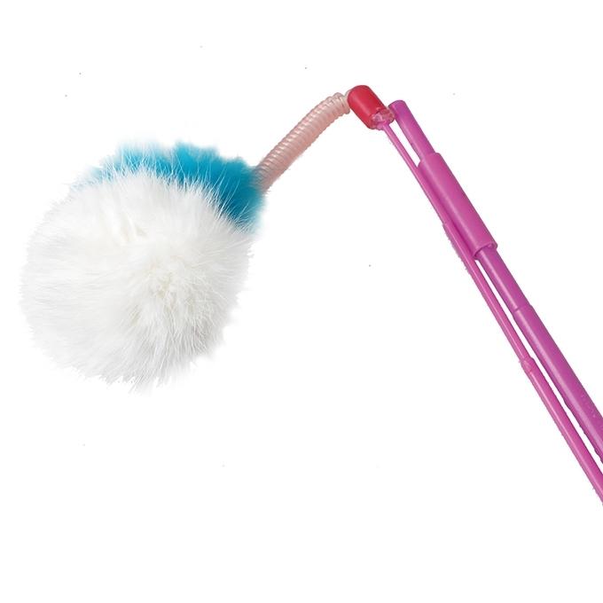 雙節釣竿式之圓球款。 塑竿可以摺疊或者展開,安全方便的連接扣,最長可調至55cm,玩耍範圍廣。 天然兔毛製作的大毛球,拖著天然兔毛的尾巴,連著柔軟的捲線來回搖動,十分吸引愛貓的興趣。 讓主人和愛貓的生活充滿樂趣。