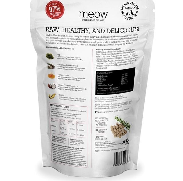 MEOW is made using only the highest quality ingredients aimed at nourishing your pet's health. We combine the nutrition and taste of fresh, raw food and put it through a gentle freeze drying process which protects all the natural enzymes and nutrients, so none of the wholesome goodness is cooked out.
