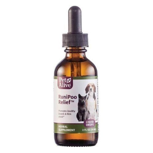RuniPoo Relief comes in convenient liquid form, and the concentrated drops are easily disguised in your pet's food or a favorite treat.