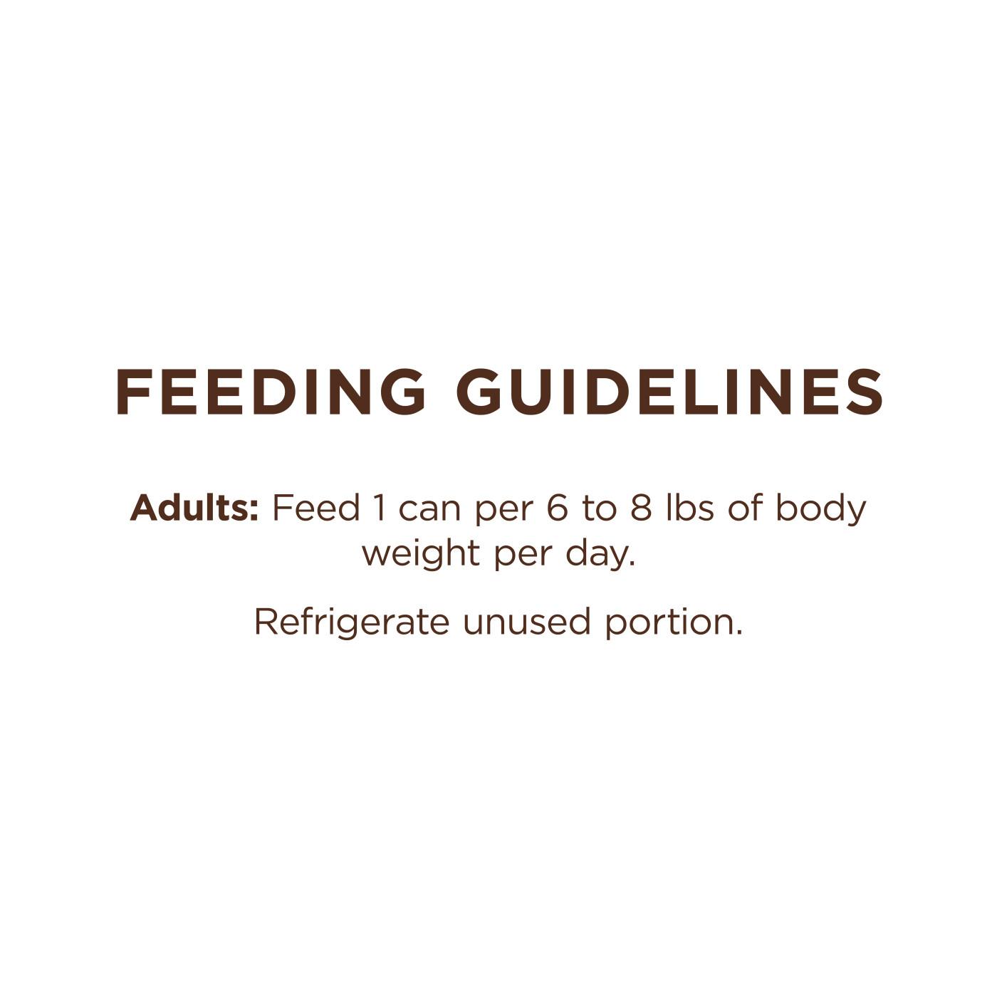 Wet feeding instructions: Adult Maintenance- 3 oz: Feed 2 cans per 6 to 8 lbs of body weight per day. 5.5 oz: Feed 1 can per 6 to 8 lbs of body weight per day.