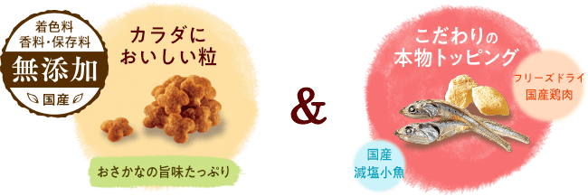 ●そのまま与えます。(粒をやわらかくして与えたい場合は、ぬるま湯か水をヒタヒタ程度に加え、ふやかしてください。)いつでも新鮮な水が飲めるようにしてください。(総合栄養食ですから、本商品と水だけで必要なすべての栄養をバランスよく摂ることができます。)
