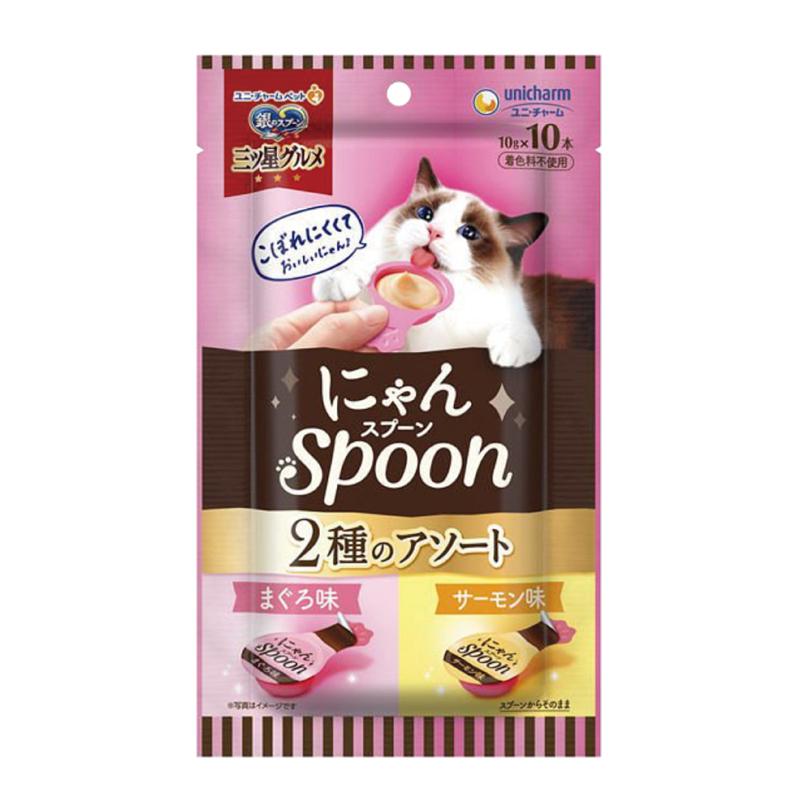 日本「銀湯匙」美味肉醬系列推出全新湯匙型設計肉醬,令貓咪方便進食又不易灑落將魚肉搗碎製成順滑可口的肉泥小食。