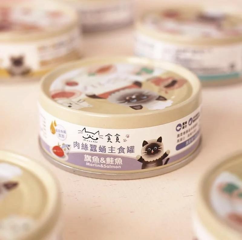 [貪貪-貓罐]蠶蛹機能主食罐|肉絲|旗魚+鮭魚|80g|(肉絲/主食)