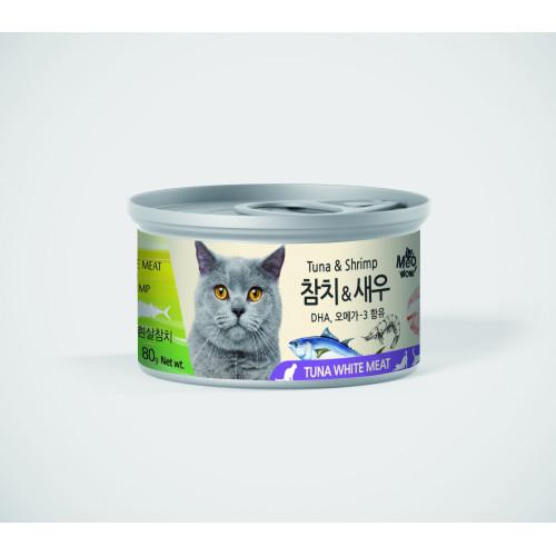 [Meowow!]天然低磷貓罐|高級吞拿魚+鮮蝦|80g|(湯汁肉絲)