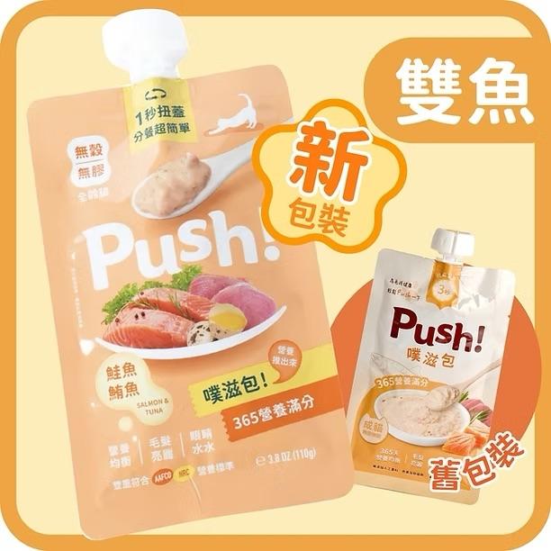 [PUSH!]噗滋包|無膠無穀主食肉泥唧唧餐包|雙魚味(三文魚+吞拿魚)|110g|台灣製