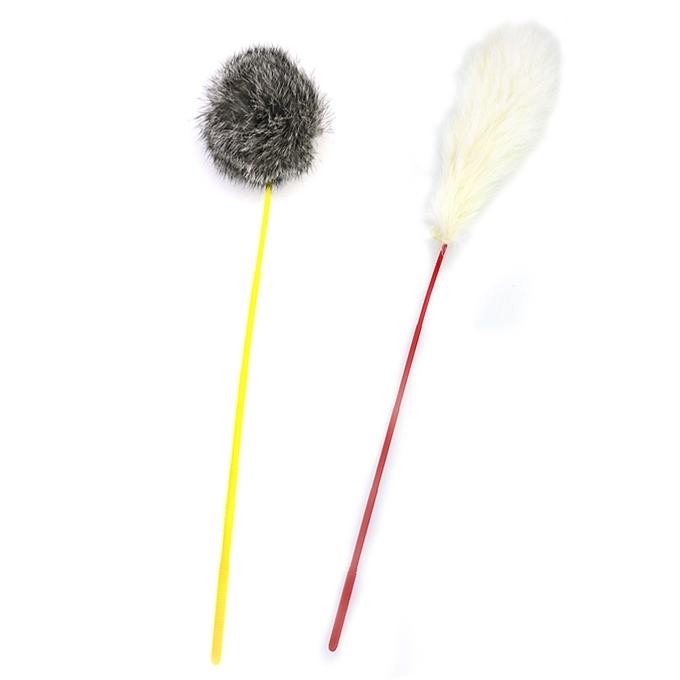 [Cattyman-貓玩具]毛毛球+直條毛雙拼貓棒|2支裝