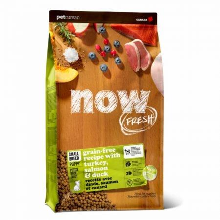 Made with fresh turkey, salmon and duck and featuring small kibble just perfect for tiny teeth, our delicious Now Fresh Small Breed Recipe for puppies provides balanced protein and fat and minimally processed goodness to help small breed pups start life off on the right paw.