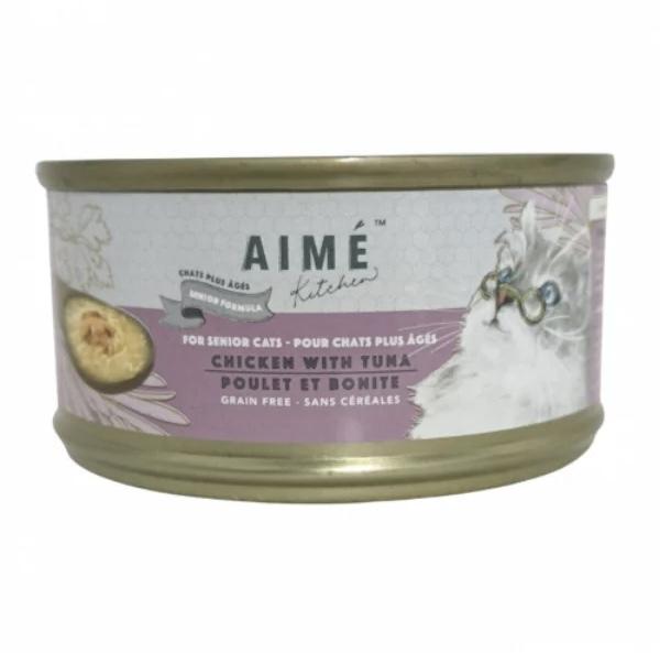 We produced the Aimé Kitchen™ Senior Formula Cans for cats at risk of urinary crystals or experiencing liver and renal concerns.