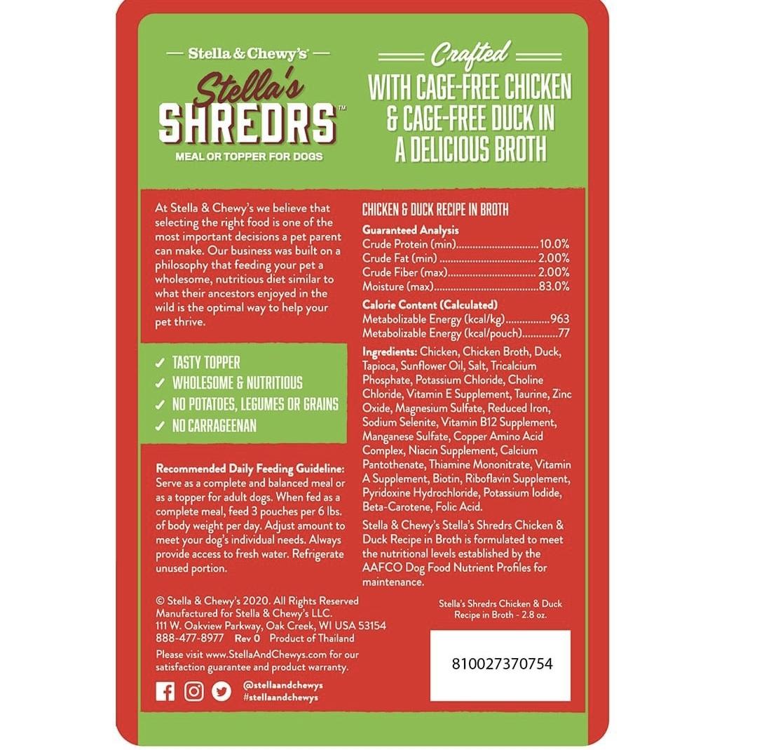 [Stella-狗濕包]Shredrs肉絲滋味包系列|放養雞+鴨肉配方|2.8oz|(湯汁肉絲/主食)