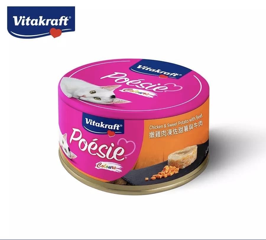 [Vitakraft-貓罐]Poesie系列|嫩雞肉佐甜薯與牛肉|全貓|(啫喱肉絲/主食)|80g