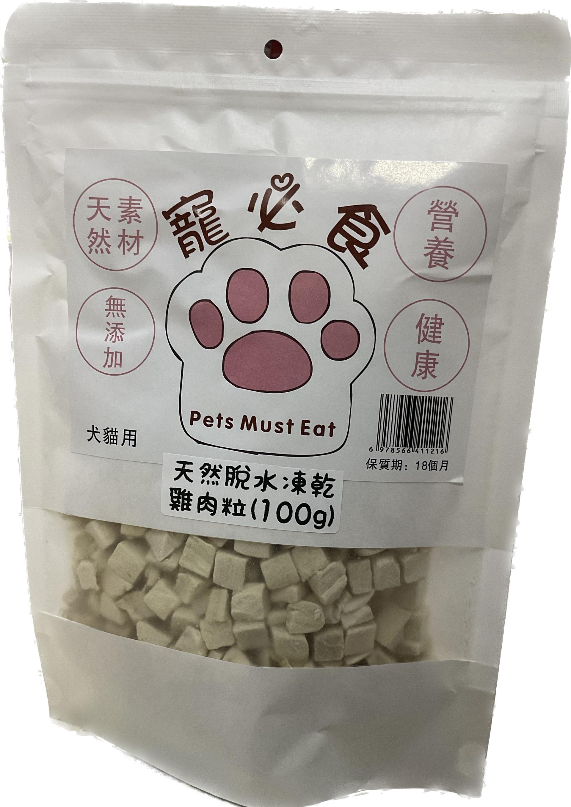 [寵必食/透明袋]天然脫水凍乾|雞肉粒|100g|(貓狗用)