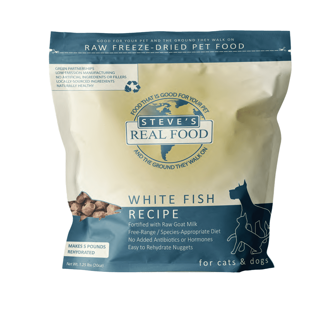 Our fish are sustainably sourced from the Pacific ocean. Like commercial-grade sushi, the whitefish is flash frozen at -40C to ensure parasites are eliminated. The produce is sourced from the Pacific Northwest, and our goat milk comes from a family farm in Gaston, Oregon. Steve's Real Food is committed to working with family farms that share our belief in sustainable farming free from added hormones, antibiotics, GMO’s, and pesticides. Read more about our ingredients.