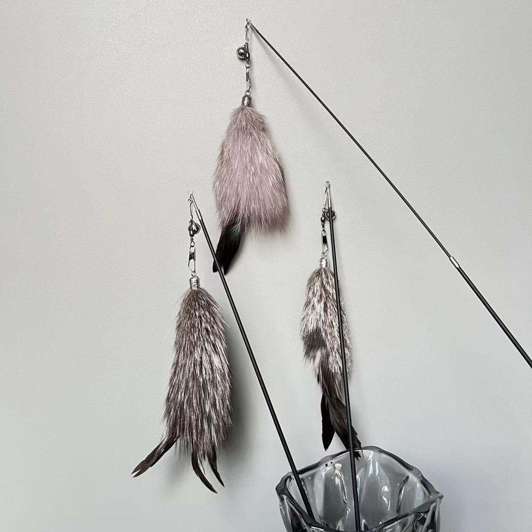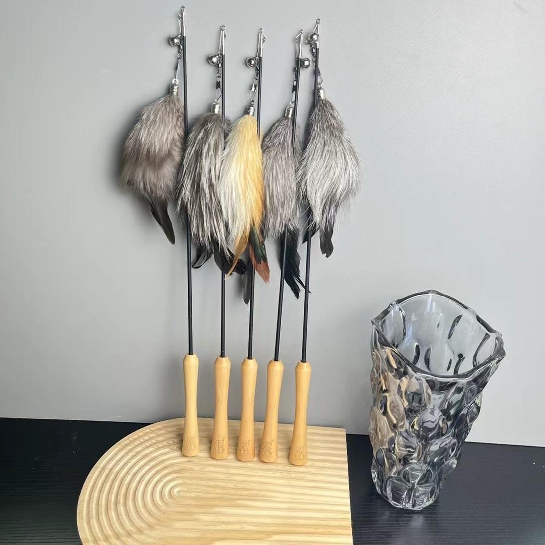 [貓玩具]伸縮逗貓棒(木柄)|狐毛|單支|(顏色隨機)