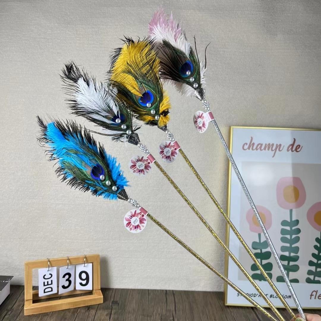 [貓玩具]鈴鈴聲羽毛逗貓棒|孔雀毛|單支|(顏色隨機)