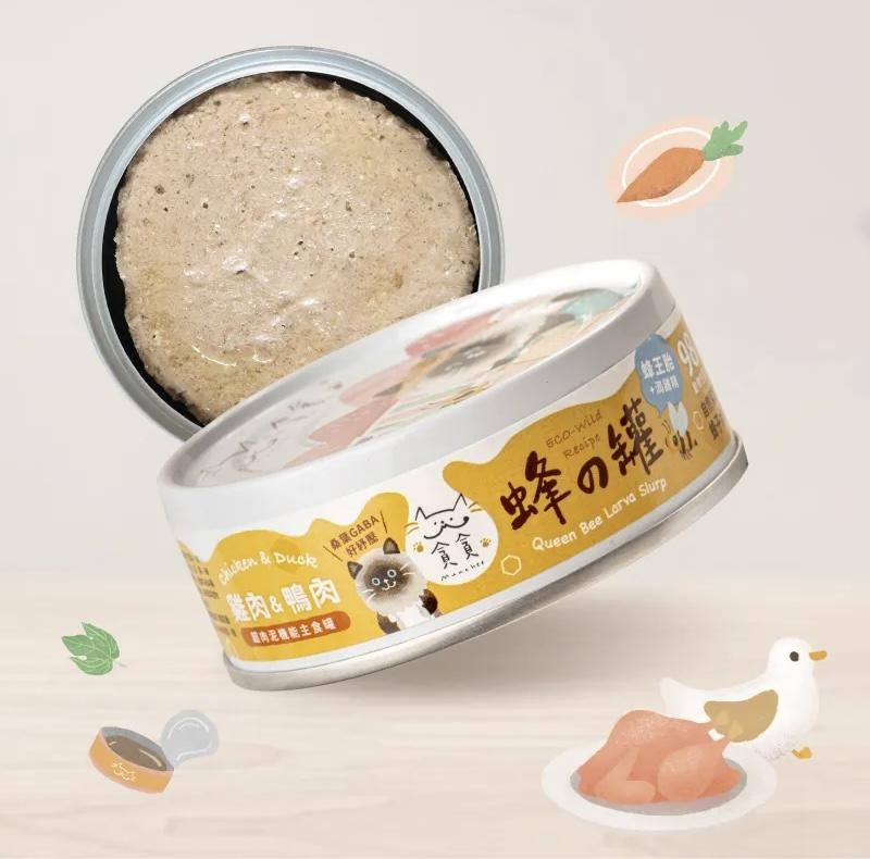 [貪貪-貓罐]蜂王胎超肉泥機能主食罐|雞肉+鴨肉|80g|(肉泥/主食)|台灣製