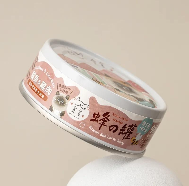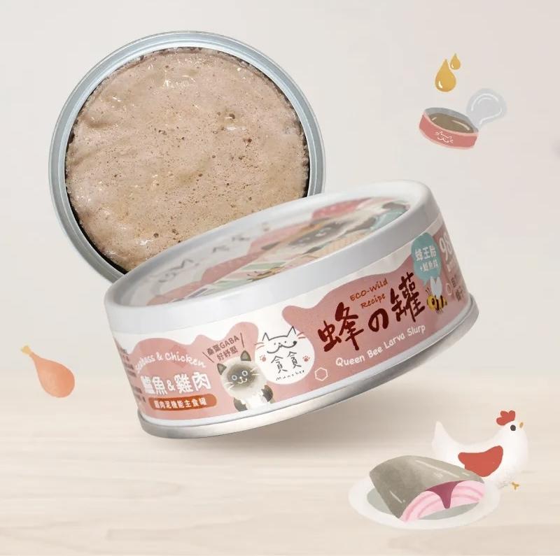 [貪貪-貓罐]蜂王胎超肉泥機能主食罐|鱸魚+雞肉|80g|(肉泥/主食)|台灣製