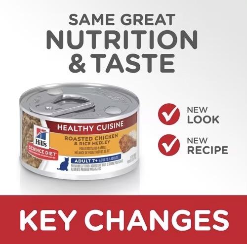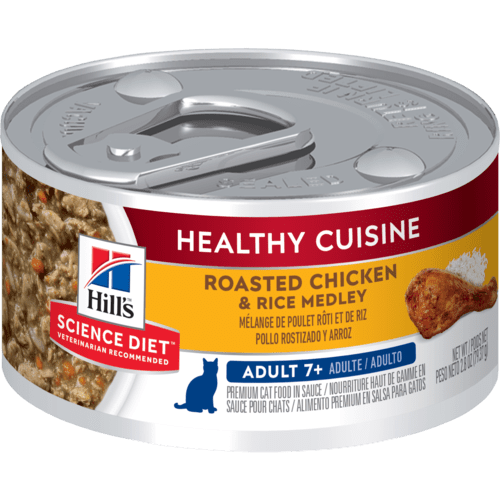 希爾思™寵物食品 高齡貓 7歲以上 Healthy Cuisine 健康燉肉罐罐 香烤雞肉燴米飯罐頭由香烤雞肉和米飯結合令人垂涎的醬汁,達到美味與營養間的完美平衡,適合您的愛貓食用。