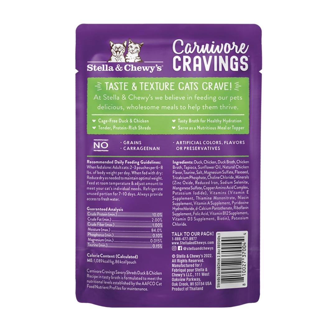 Stella & Chewy's - 成貓濕糧滋味包 為您的貓貓提供所需的營養。即使是最挑剔的貓咪也會對這種令貓難以抗拒的味道驚嘆不已。這款富含蛋白質、鮮嫩多肉的肉絲滋味包,有助於吸引活潑的貓咪保持水分。它可以作為一頓完整的膳食,也可以作為乾糧的配料。